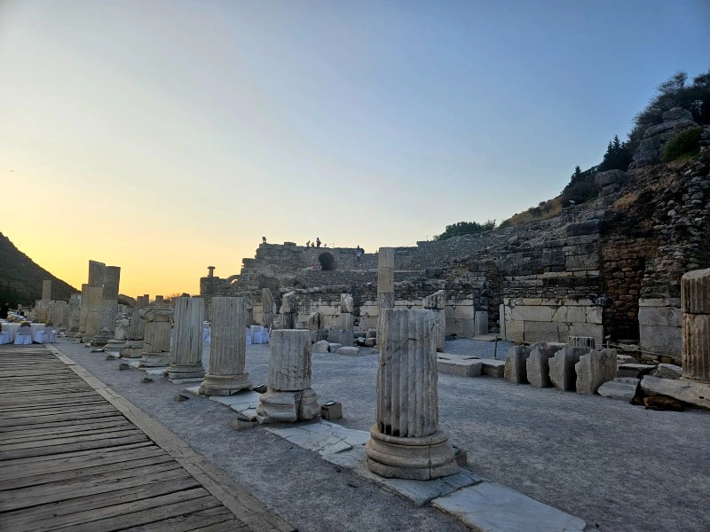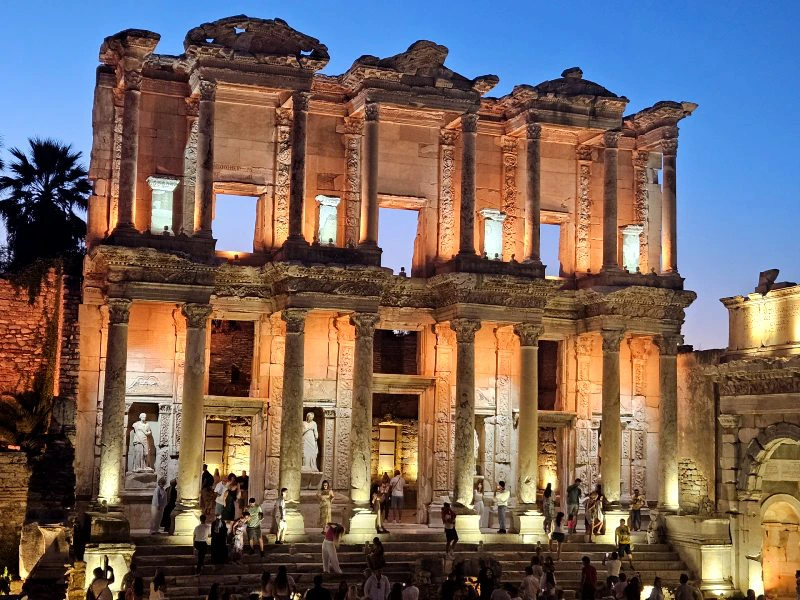 Efeze was ooit een van de belangrijkste steden van Klein-Azië, bekend als handelscentrum en religieus hart van de regio. Samen met een gids wandel je over de geplaveide straten, langs marmeren zuilen, indrukwekkende tempels en het enorme theater dat ooit plek bood aan 25.000 toeschouwers. Je leert over het dagelijkse leven van de Romeinen, de invloed van Griekse en Byzantijnse culturen en de verhalen achter beroemde gebouwen zoals de Bibliotheek van Celsus en de Tempel van Artemis. De gids vertelt boeiende anekdotes over het politieke en religieuze leven van toen, zodat je de grandeur en betekenis van de stad echt voelt. Tijdens de tour zie je ook huizen met prachtige mozaïeken en fresco’s die doen denken aan het leven van rijke families.