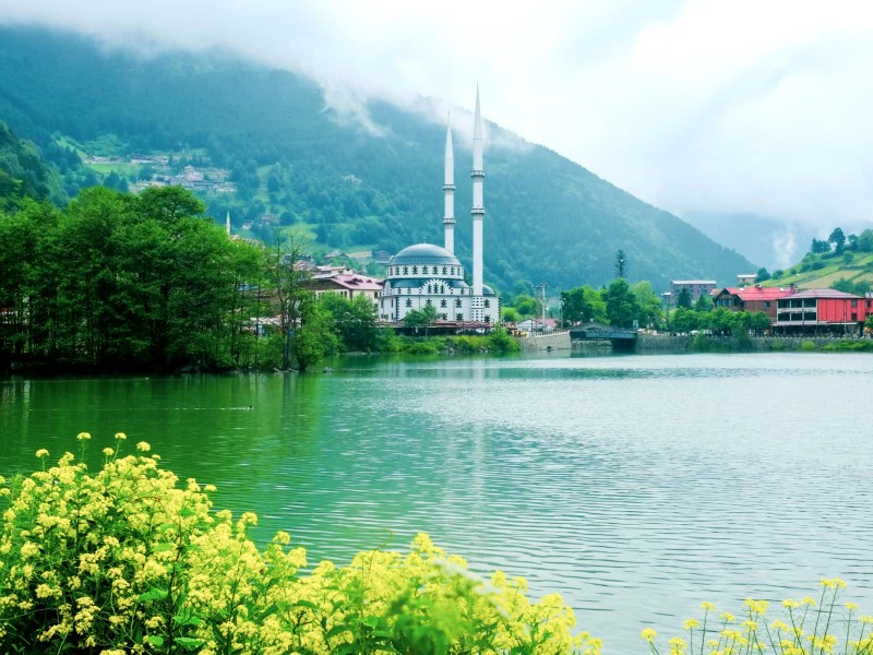 Rijd samen met een kleine groep en gids de groene bergen in, waar de lucht naar dennen ruikt en theevelden de hellingen kleuren. Onderweg stop je bij een familiebedrijf dat al generaties lang messen smeedt, dé trots van Sürmene. Daarna duik je de wereld van de Zwarte Zee thee in. Je ziet hoe de theebladeren worden verwerkt, proeft een vers kopje thee en begrijpt meteen waarom dit de trots van de regio is. Voordat je verder reist naar Uzungöl, maak je nog een smakelijke stop bij een lokale winkel vol kleurrijk Turks fruit, honing en zoetigheden. Dan kronkelt de weg omhoog en verschijnt het uitzicht waar het allemaal om draait: het meer van Uzungöl, omringd door dichte bossen en houten chalets. Vanaf het uitzichtpunt bij Bayraktepe kijk je uit over het water, waarna je bij een restaurant aan het meer geniet van een rustige lunch. Op de terugweg maak je nog een korte fotostop bij een oude stenen brug, een stille herinnering aan vroegere handelsroutes, voordat je weer terugkeert naar Trabzon.