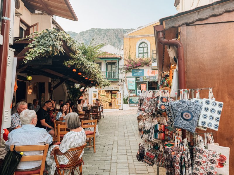 Tussen Fethiye en Antalya ligt het charmante kustplaatsje Kaş, een plek die zijn gemoedelijke karakter goed heeft weten te bewaren. Geen grote hotels of drukke boulevards, maar smalle straatjes vol witgekalkte huizen met blauwe luiken, kleine boetiekjes en gezellige cafés. Je slaapt in een kleinschalig hotel in het centrum, waar je ’s ochtends aanschuift voor een ontbijt met verse olijven, brood en honing, terwijl het stadje langzaam ontwaakt. Vanuit hier kun je Kaş makkelijk te voet verkennen: wandel door de oude straatjes, kijk rond in de winkeltjes of zoek een terrasje met uitzicht op zee. Heb je zin in een uitstapje? Rijd dan een stukje het binnenland in en bezoek de ruïnes van Myra, waar oude Lycische rotsgraven nog steeds in de berghelling zijn uitgehouwen. Terug in Kaş is de sfeer ontspannen en dineer je ’s avonds aan de haven bij een lokaal meze-restaurant, met gegrilde vis, kruidige gerechten en het geluid van krekels op de achtergrond.