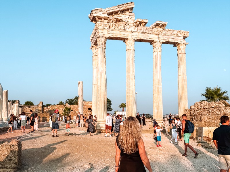 Na een lange rit van het binnenland naar de kust rijd je Side binnen: een charmante badplaats waar oud en nieuw samenkomen. De geur van zee en pijnbomen hangt in de lucht, terwijl de contouren van eeuwenoude ruïnes tussen moderne gebouwen opduiken. Je slaapt in een kleinschalig hotel met zwembad, op loopafstand van het historische centrum. Wandel langs het oude theater en de tempels van Apollo en Athena, of strijk neer in de haven voor een verkoelende limonade met uitzicht op de vissersboten. Heb je zin in ontspanning, dan is het strand nooit ver weg. ’s Avonds schuif je aan bij een lokaal restaurant voor een tafel vol Turkse meze en verse vis.
