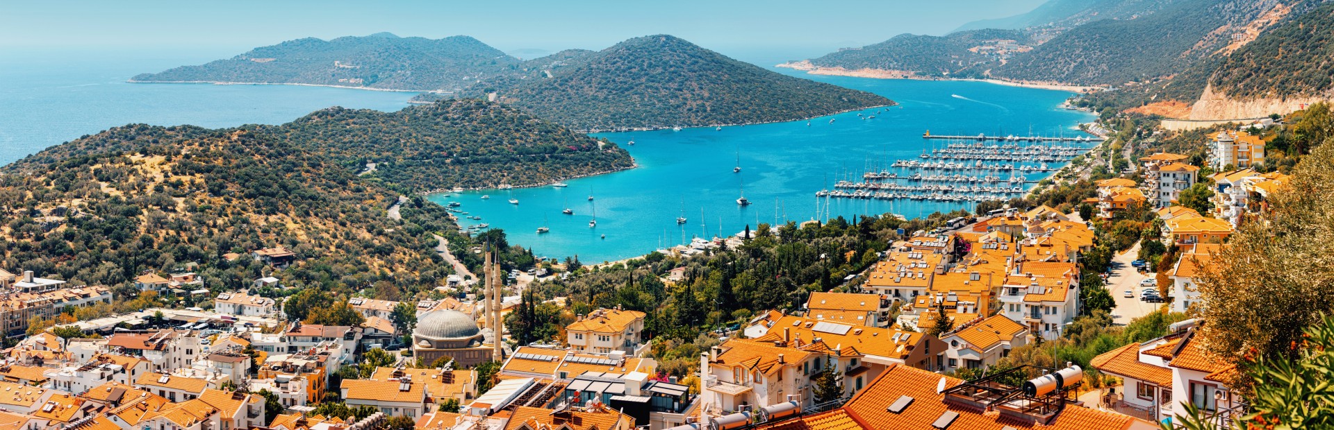 Langs de kronkelende kustweg rijd je van Side naar Kaş, een van de meest gemoedelijke plaatsjes aan de Turkse Rivièra. De route loopt langs steile kliffen, citrusgaarden en kleine dorpjes waar de tijd lijkt stil te staan. Aangekomen in Kaş valt meteen de ontspannen sfeer op. In de smalle straatjes met witte huizen en blauwe luiken hangt de geur van bougainville en versgebakken brood. Je slaapt in een kleinschalig hotel in het centrum, vanaf hier wandel je gemakkelijk naar de haven of naar de kleine winkeltjes en terrasjes met uitzicht op zee. Wie de omgeving wil verkennen, rijdt in een half uurtje naar de ruïnes van Myra, waar stenen maskers en theaterzalen herinneren aan het rijke verleden van de Lycische beschaving. En ‘s avonds? Dan schuif je aan bij een van de sfeervolle restaurants aan de haven, met een bord vol meze en een glas wijn.