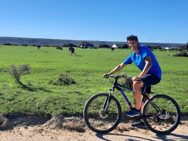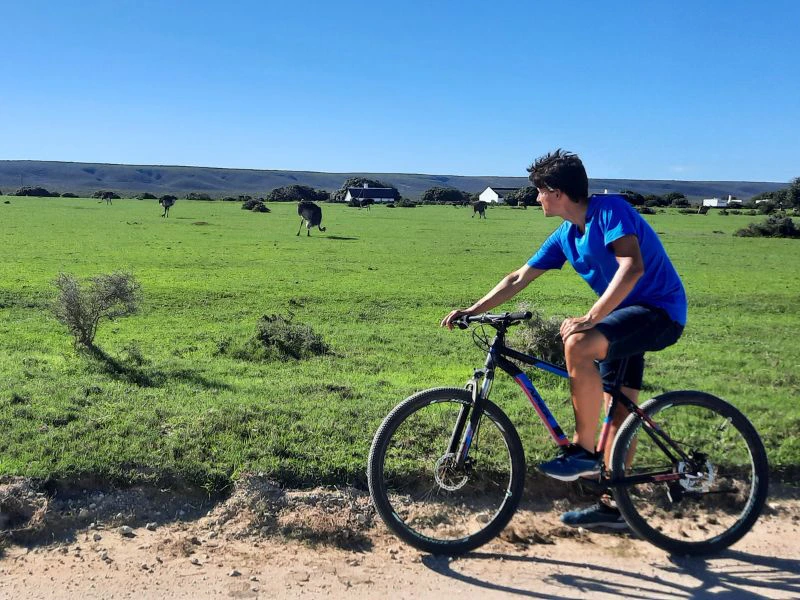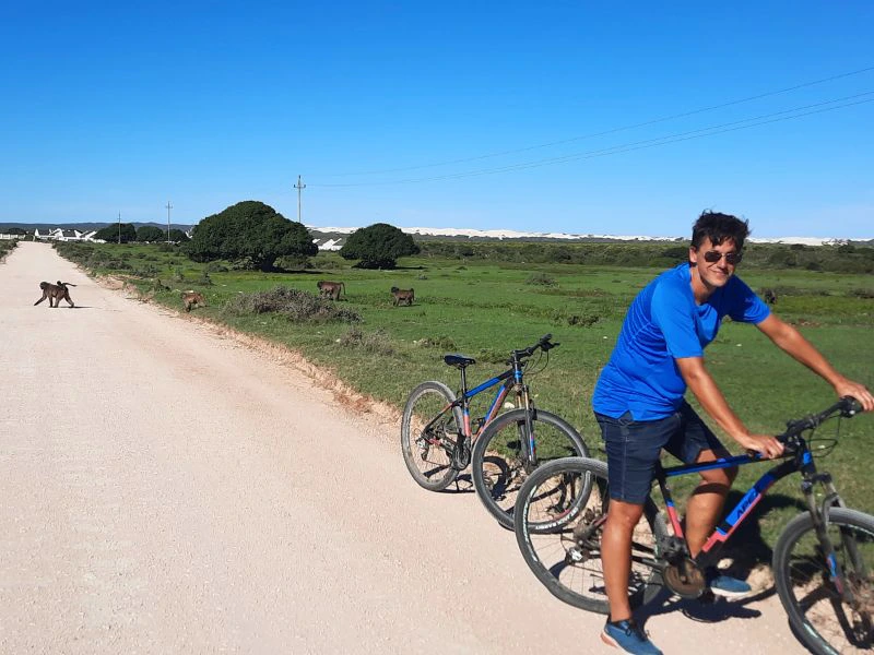 Huur een mountainbike en volg een van de gemarkeerde routes door het reservaat. Je fietst tussen zebra’s en struisvogels, langs duinen en uitzichtpunten. Een gids is niet nodig, het is juist leuk om in eigen tempo op pad te gaan.