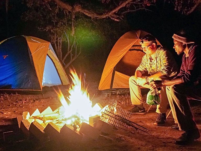 In de loop van de middag kom je vervolgens aan bij de locatie in de bush waar je de nacht gaat doorbrengen. De campingmaterialen liggen al klaar en samen met de gids kun je het kamp op gaan bouwen. In de Zuid-Afrikaanse winter (juni -sept) kan het ’s nachts flink afkoelen. Zorg dus dat je dan een warm vest bij je hebt. Je slaapt lekker basic in de tent op een opblaasbare matras in een slaapzak met een kussentje. Voor wie het koud heeft, zijn er extra dekens beschikbaar.
